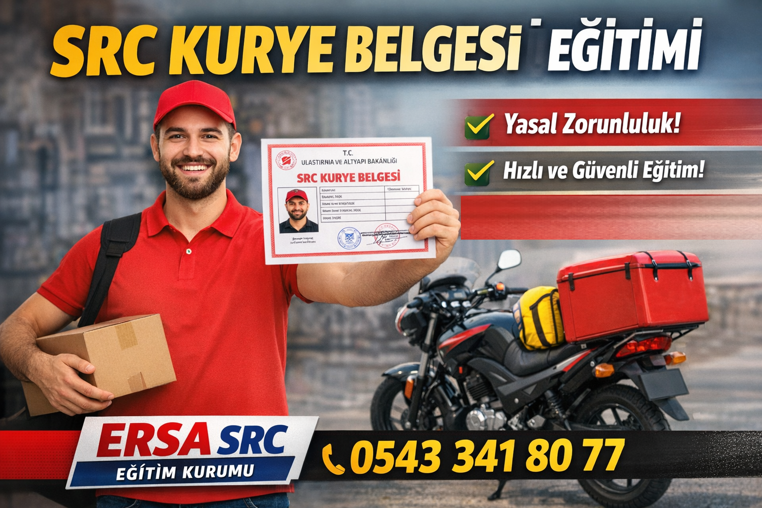 Kurye sektöründe çalışmak isteyen sürücüler için SRC Kurye Belgesi (SRC4) eğitimleri kurumumuz tarafından profesyonel şekilde verilmektedir.